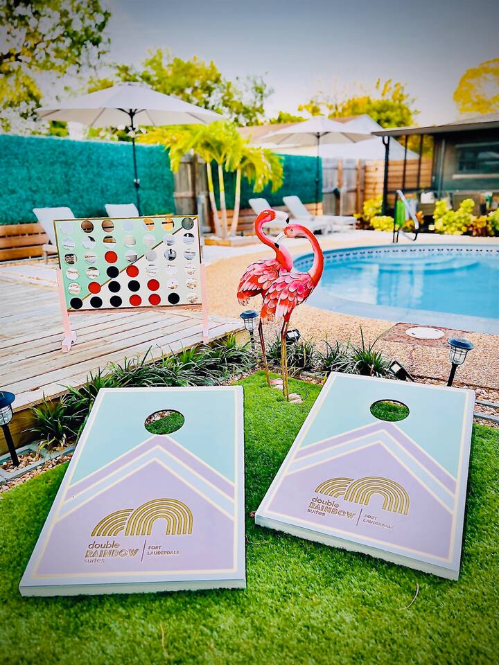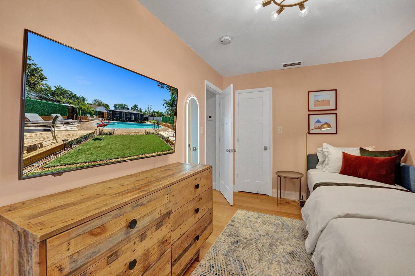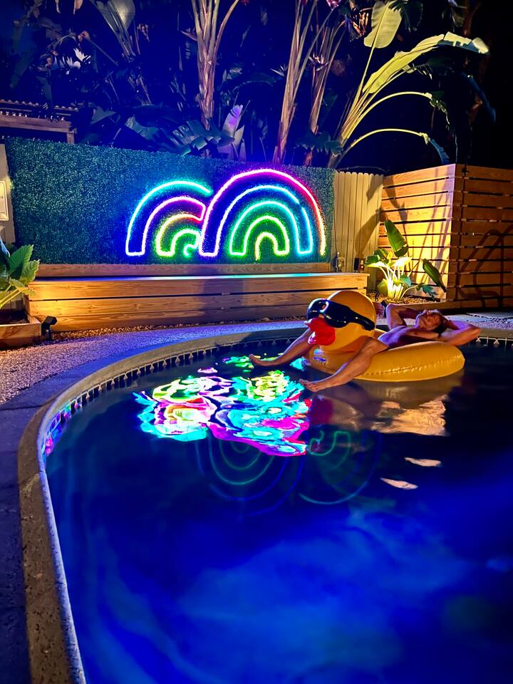 Welcome to Double Rainbow Suites Your private Fort Lauderdale escape — perfect for families, friends, and couples looking for relaxation, fun, and a touch of luxury. 🏡 The Space 2 Bedrooms | 2 Bathrooms | Sleeps 6 Primary Bedroom: King bed Second Bedroom: 2 twin beds en-suite bath with jetted spa tub Living Room: Open concept with large sofa & smart TV 🌴 Outdoor Living Heated saltwater pool (year-round, open 24/7) Fully fenced backyard — great for kids & pets Screened-in Florida room with lounge seating BBQ grill, outdoor dining table, fire pit, sun loungers 🍽 Kitchen & Dining Fully stocked kitchen with stainless steel appliances Coffee station (pour-over, coffee, sugar, creamer) Dining table for group meals 💻 Work & Play Dedicated workspace with ergonomic chair & monitor High-speed WiFi (649 Mbps) Board games, life-size games, playground, bikes 🌊 Nearby Attractions Wilton Drive – 1 mile (dining, nightlife, LGBTQ+ hub) Fort Lauderdale Beach – 2.5 miles Sebastian Beach – 2.5 miles Las Olas Blvd – shopping, art, and waterfront dining 🐾 Pet Friendly Small pet fee applies — fenced yard & dog-friendly beaches nearby Just a short drive or Uber ride to the Fort Lauderdale Convention Center. Going on a cruise? We are are conveniently located close to Port Everglades so you can stay prior or after your cruise with any of the best cruise lines: Disney Cruise Line Holland America Line Princess Cruises Ritz-Carlton Yacht Collection Royal Caribbean Celebrity Cruises Silversea Cruises Viking Ocean Cruises Balearia Caribbean Crystal Cruise 📅 Book your getaway today and enjoy the perfect mix of relaxation, entertainment, and Florida sunshine! Other things to note: We are an event friendly space, but any event. including Weddings, Birthdays, Baby Showers, Gender Revels, Bat Mitzvah, Corporate Events, Filming, Shoots, Networking Mixers and/or any other event must be planned with us in advance. An event fee could be required. If you attempt to throw an unapproved event you will be shut down and removed without a refund.