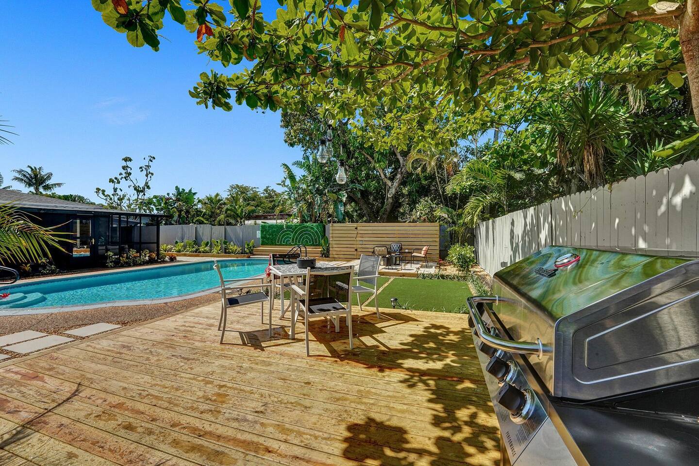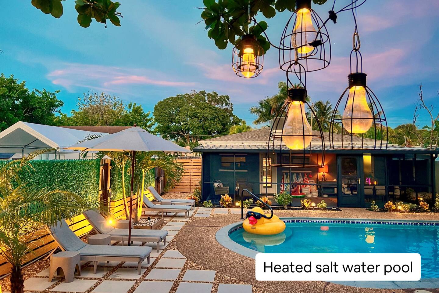 Escape to our stunning whole house oasis! Enjoy a comfy king bed vacation with remote work perks. - 2-bedroom, 2-bath gem - Jetted spa tub in one bathroom - Private backyard - HEATED salt water pool - Less then a mile from Wilton Drive - Less then 3 miles to Fort Lauderdale's Sebastian beach - Easy access to downtown, Las Olas, and River Walk. - Stylish interiors - Perfect for 6 guests - Fully LICENSED \ PERMITTED for your peace of mind. Book your getaway today!